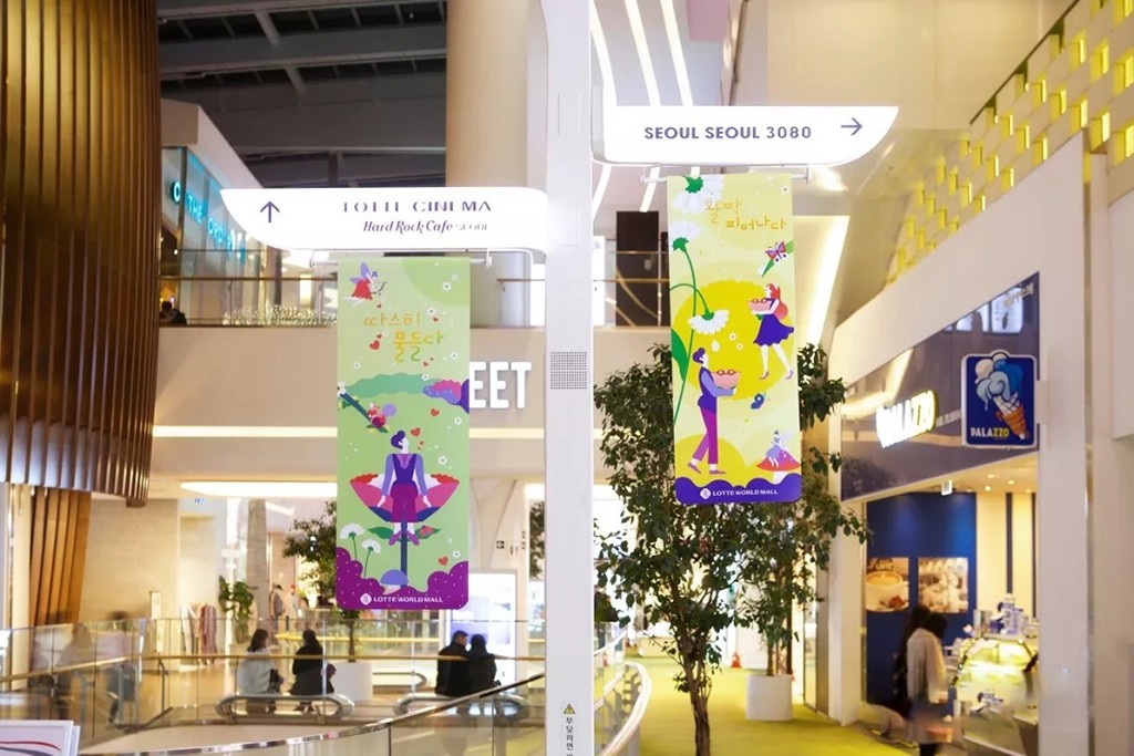 樂天購物中心夏季主視覺是由韓國的插畫家-Shinyoung 所創(chuàng)作,作品敘事性的展示,而不是來自于單一的設(shè)計(jì)背景。通過更加直觀、多元化的視覺體驗(yàn),讓大家沉浸于樂天購物中心的場(chǎng)景世界當(dāng)中。